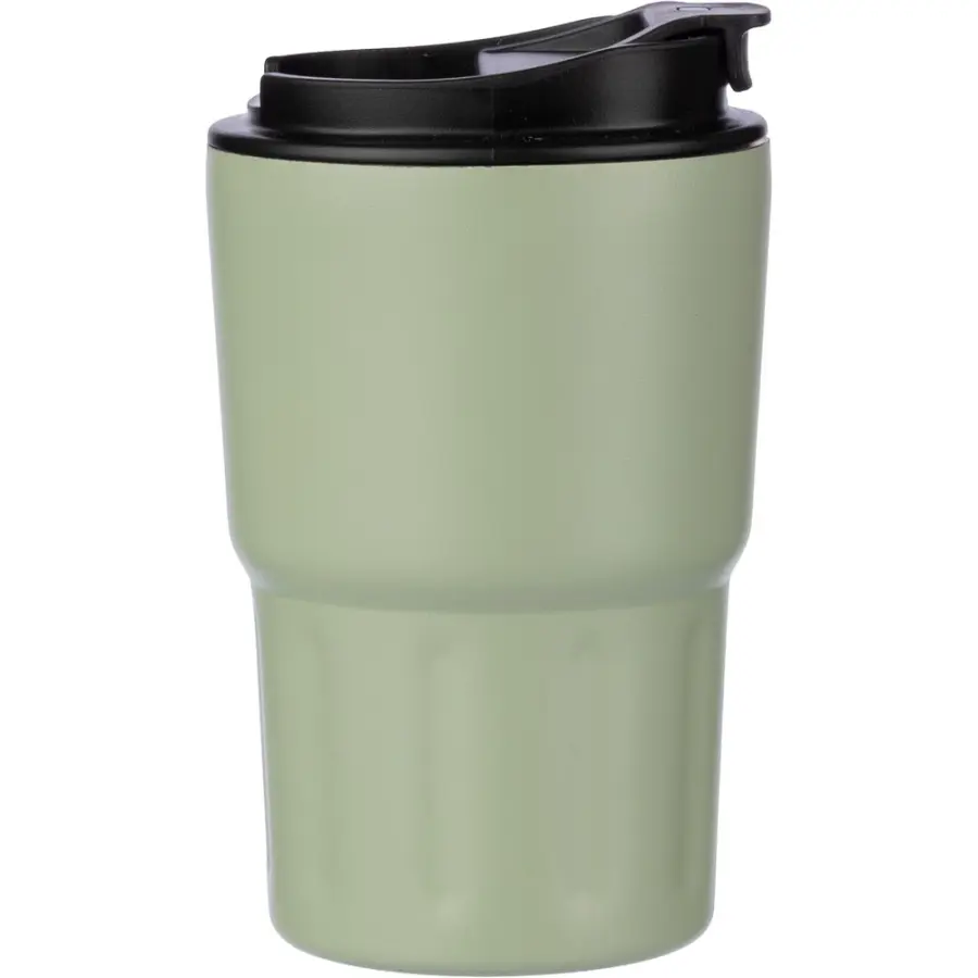 Kubek termiczny 320 ml, posiada podwójne ścianki ze stali nierdzewnej z próżnią między ściankami, co spowalnia oddawanie temperatury na zewnątrz, zachowując funkcje termosu, pasek ułatwiający noszenie lub przypięcie, plastikowe wieczko z otwarciem umożliwiającym łatwą obsługę jedną ręką, dobrze trzyma temperaturę ciepłych i zimnych napojów, utrzymuje temperaturę napojów gorących do 10 godzin +leakproof