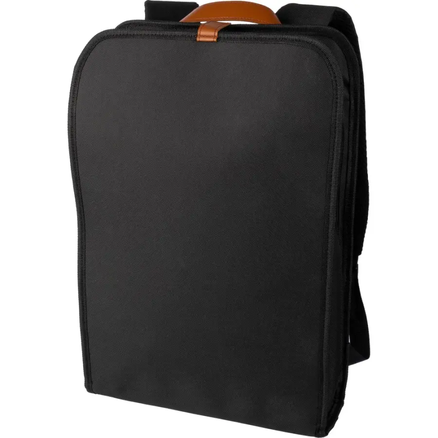 Plecak na laptopa 15" wykonany z charakterystycznej tkaniny Oxford, która zwiększa odporność na zachlapania, kieszeń na laptopa, wewnętrzna kieszeń z siatkami, regulowane paski na ramię, uchwyt do zawieszania i zamknięcie na magnes, można w nim przenieść książki, laptopa oraz drobne zakupy lub przybory, produkt wykonany z RPET