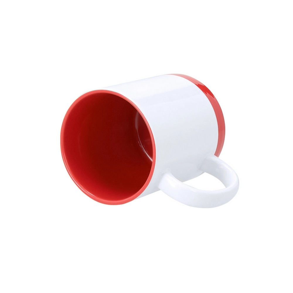 Kubek 350 ml, wnętrze kubka oraz ozdobny pasek w dopasowanym kolorze, nadaje się pod znakowanie metodą sublimacji, produktu nie należy myć w zmywarce, produkt wykonany z ceramiki