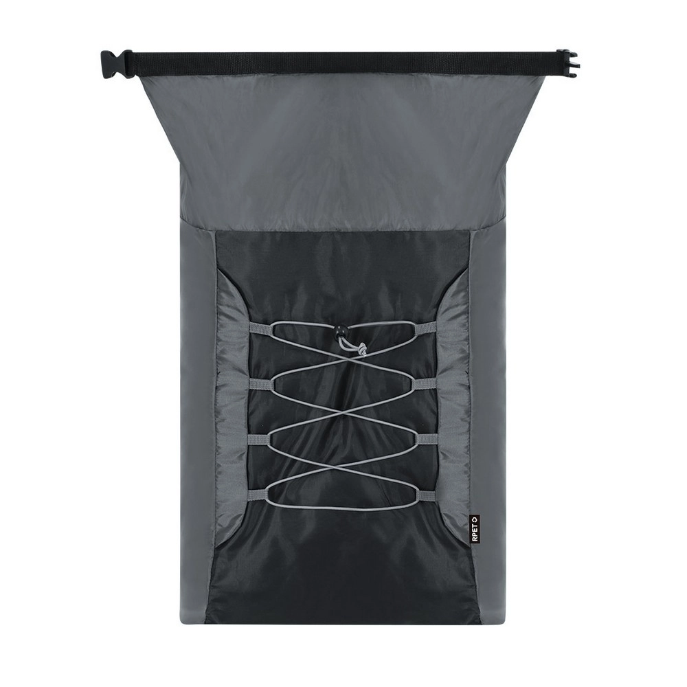 Plecak, posiada regulowane paski na ramię umożliwiające dopasowanie ich długości do własnych preferencji, elastyczny ściągacz z przodu, produkt wykonany z poliestru 210D RPET i ripstop