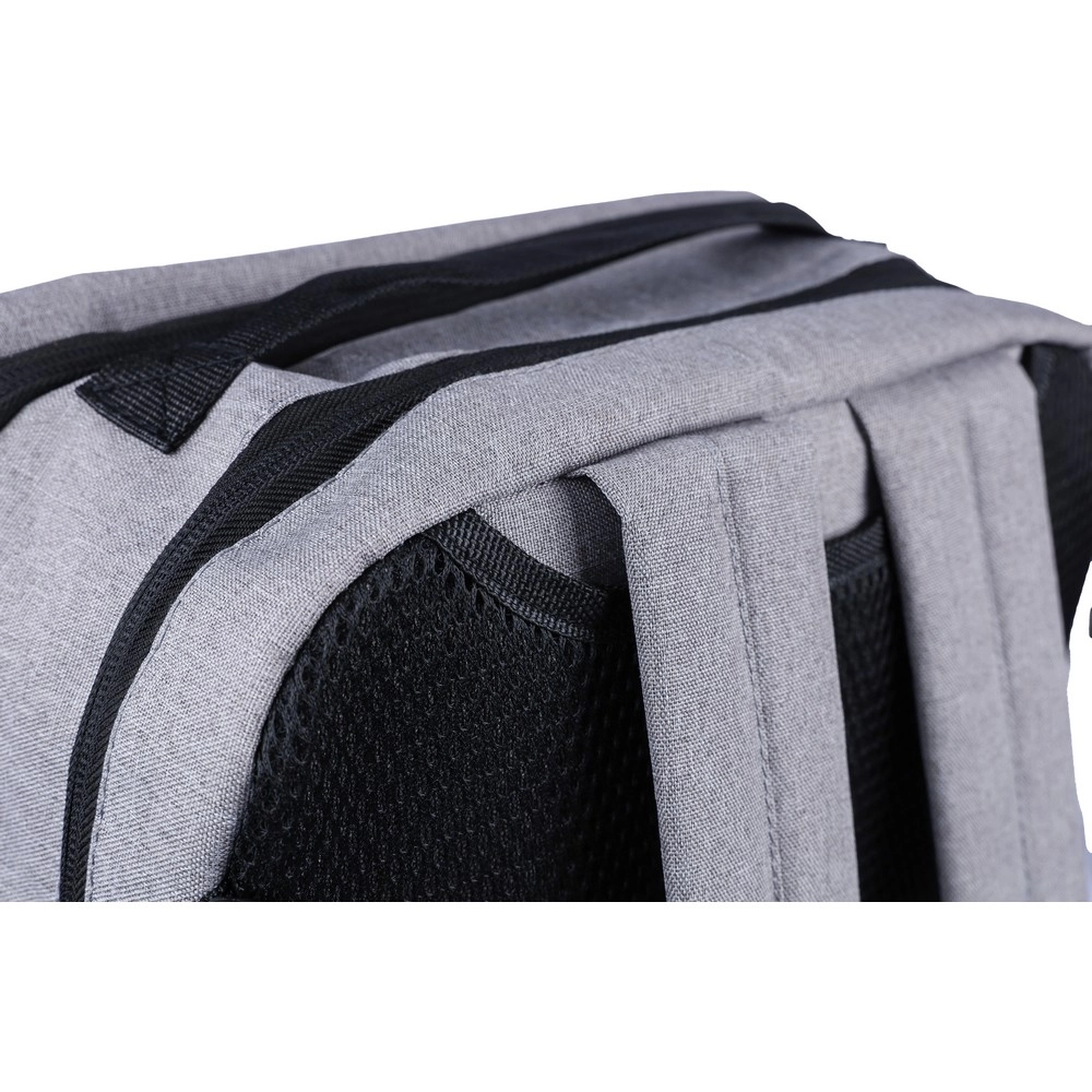 Plecak na laptopa 15" z podszewką wewnątrz, pojemność plecaka to 1 l, posiada uchwyt do noszenia w dłoni oraz dwa boczne uchwyty, dwie duże przegrody zapinane na zamek, w tym jedna z przegrodą na laptopa 15" zapinaną na rzep, z przodu mała kieszonka zapinana na zamek, wewnątrz oddzielny regulowany pasek na ramię do zamocowania na plastikowych haczykach (łącznie 4 plastikowe haczyki), za wyściełanym tyłem ukryte są dwa regulowane paski na ramiona, które umożliwiają noszenie torby jak plecaka, sprawdzi się w podróży, ikona RPET na metce, produkty wykonany z RPET, poliestru, siatki i pianki