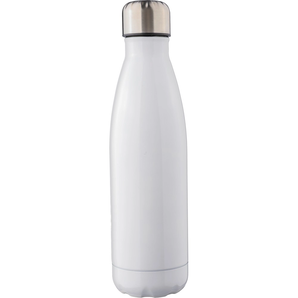 Butelka termiczna 500 ml, posiada podwójne ścianki ze stali nierdzewnej z recyklingu z próżnią między ściankami, co spowalnia oddawanie temperatury na zewnątrz, zachowując funkcje termosu, ikona stali nierdzewnej z recyklingu na produkcie, zapakowana w brązowy kartonik, utrzymuje temperaturę napojów gorących do 20 godzin +leakproof