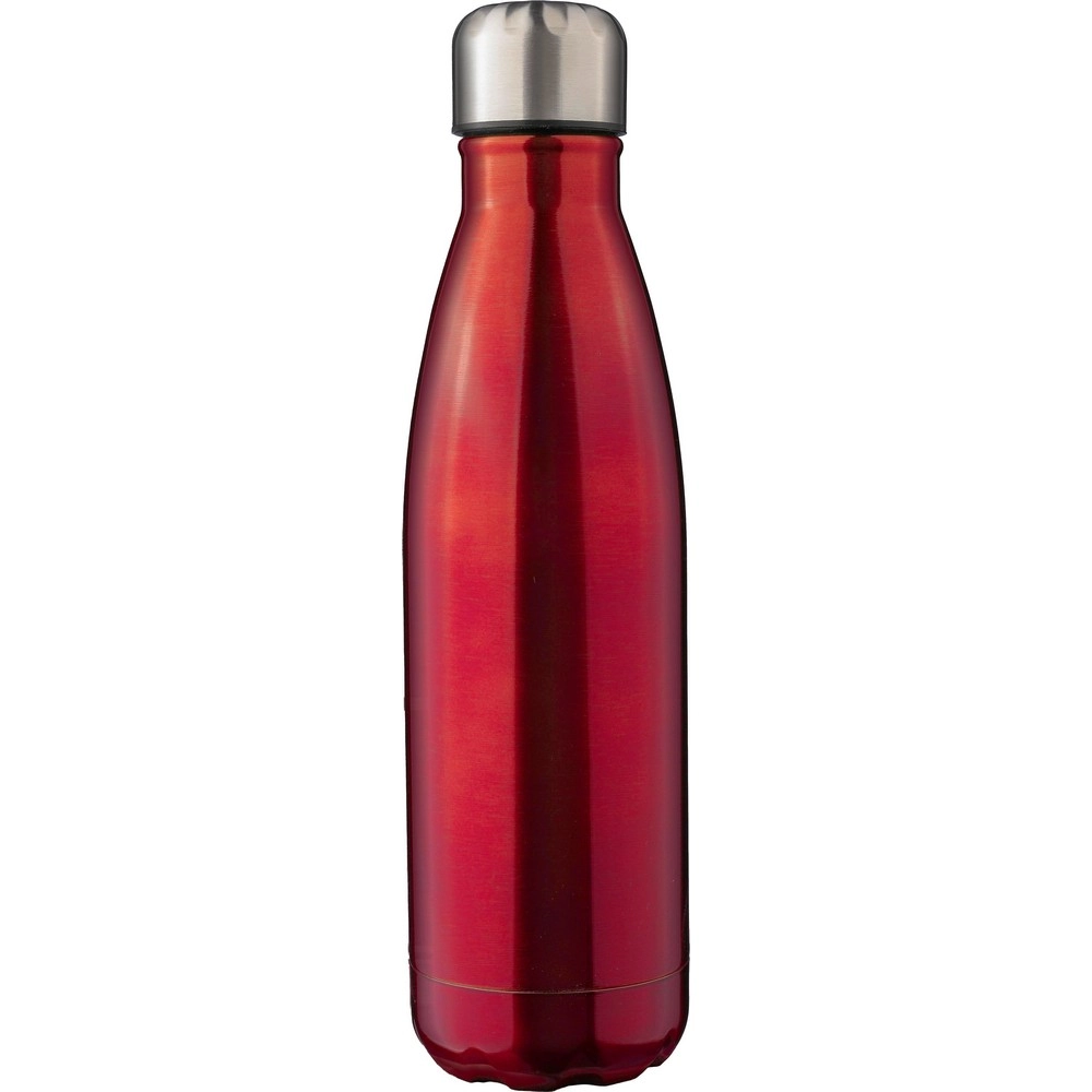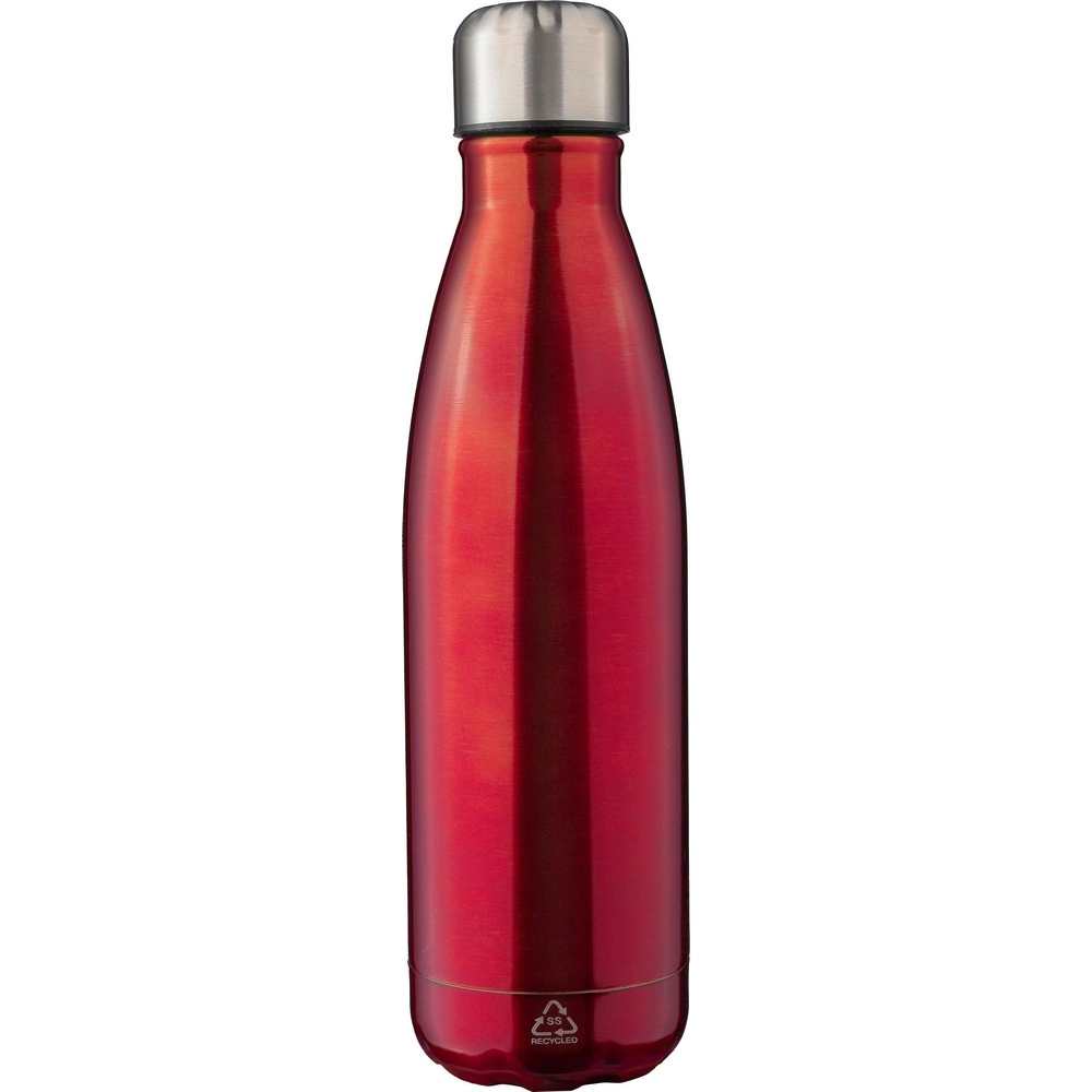 Butelka termiczna 500 ml, posiada podwójne ścianki ze stali nierdzewnej z recyklingu z próżnią między ściankami, co spowalnia oddawanie temperatury na zewnątrz, zachowując funkcje termosu, ikona stali nierdzewnej z recyklingu na produkcie, zapakowana w brązowy kartonik, utrzymuje temperaturę napojów gorących do 20 godzin +leakproof