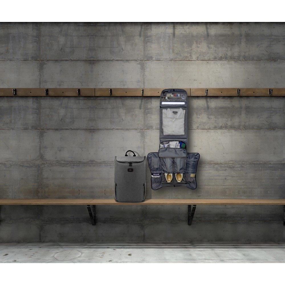 Plecak na laptopa 15,6" BrandCharger Marco Polo, łatwo przekształca się z plecaka w organizer do odzieży, wodoodporny, pomieści kompletny strój, buty i inne niezbędne rzeczy, sprawdzi się na weekendowe wypady lub podróże służbowe, ukryte kieszenie, wyściełana przegroda na laptopa 15,6", pasek umożliwiający przypinanie do wózka, kieszeń zabezpieczająca przed kradzieżą i odblaskowymi detalami, produkt wykonany z poliestru i RPET