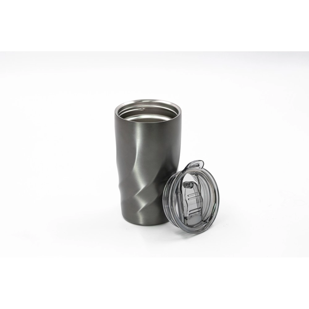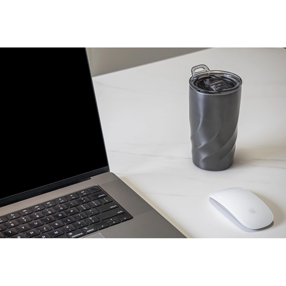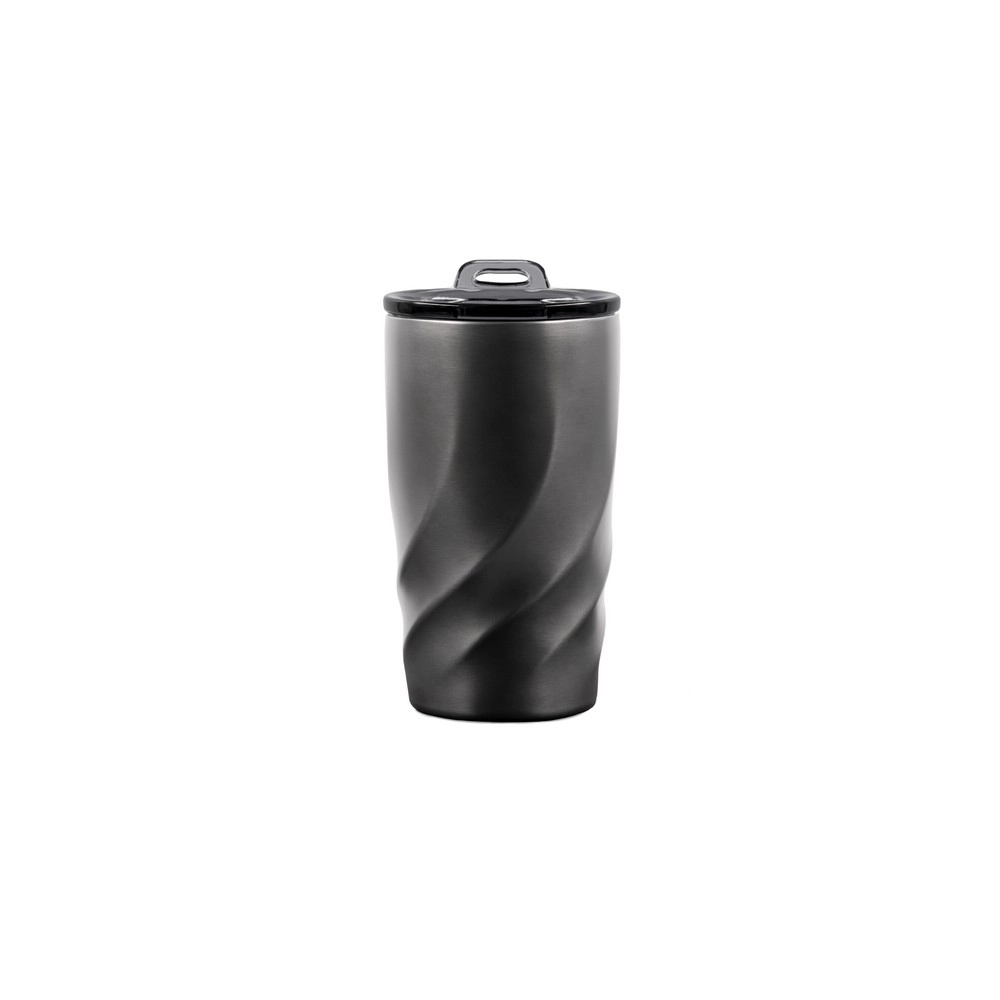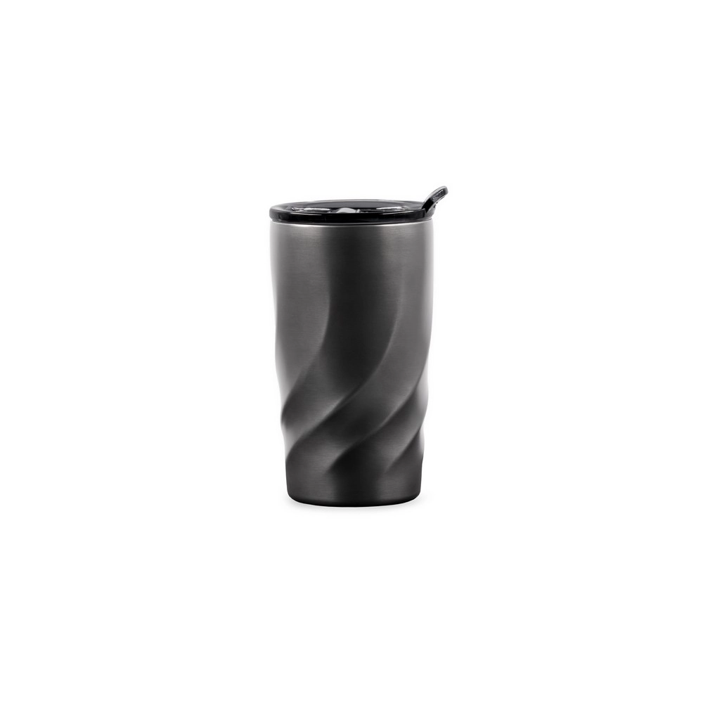 Kubek termiczny 400 ml BrandCharger Vortex Calix, leakproof, zakręcana nakrętka, zaprojektowany żeby przechowywać spienione napoje, nakrętka zawiera pętlę do noszenia, posiada podwójne ścianki ze stali nierdzewnej, co spowalnia oddawanie temperatury na zewnątrz, zachowując funkcje termosu, utrzymuje temperaturę napojów zimnych do 12 godzin, a gorących do 4 godzin, nadaje się do mycia w zmywarce, produkt wykonany ze stali nierdzewnej 304 pochodzącej z recyklingu i tritanu