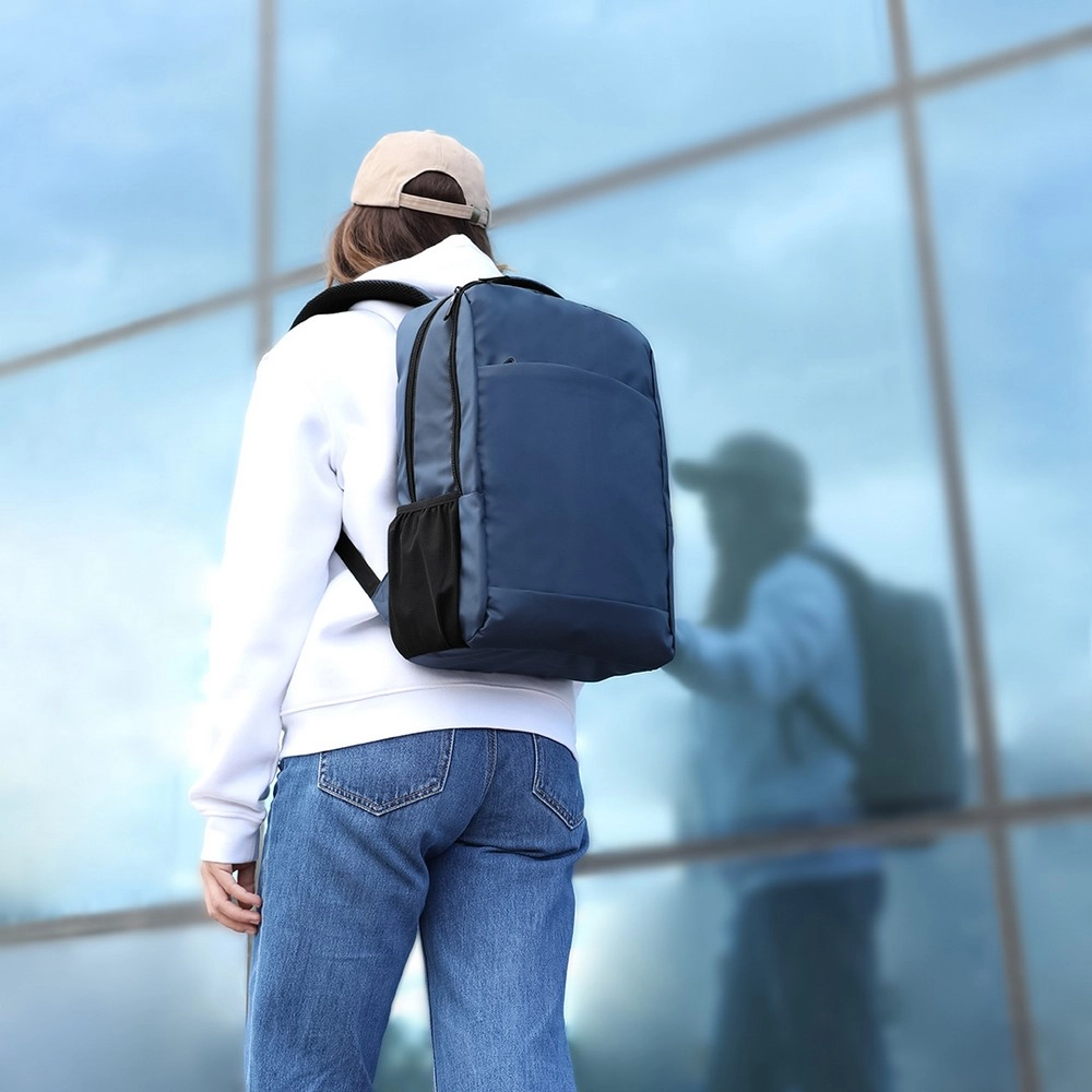 Plecak na laptopa 15" z główną kieszenią zapinaną na zamek z podwójnym ściągaczem, zawiera przednią kieszeń z zamkiem błyskawicznym, miękki tył zwiększający komfort użytkowania i regulowane paski na ramię umożliwiające dopasowanie ich długości do własnych preferencji, produkt wykonany z PU