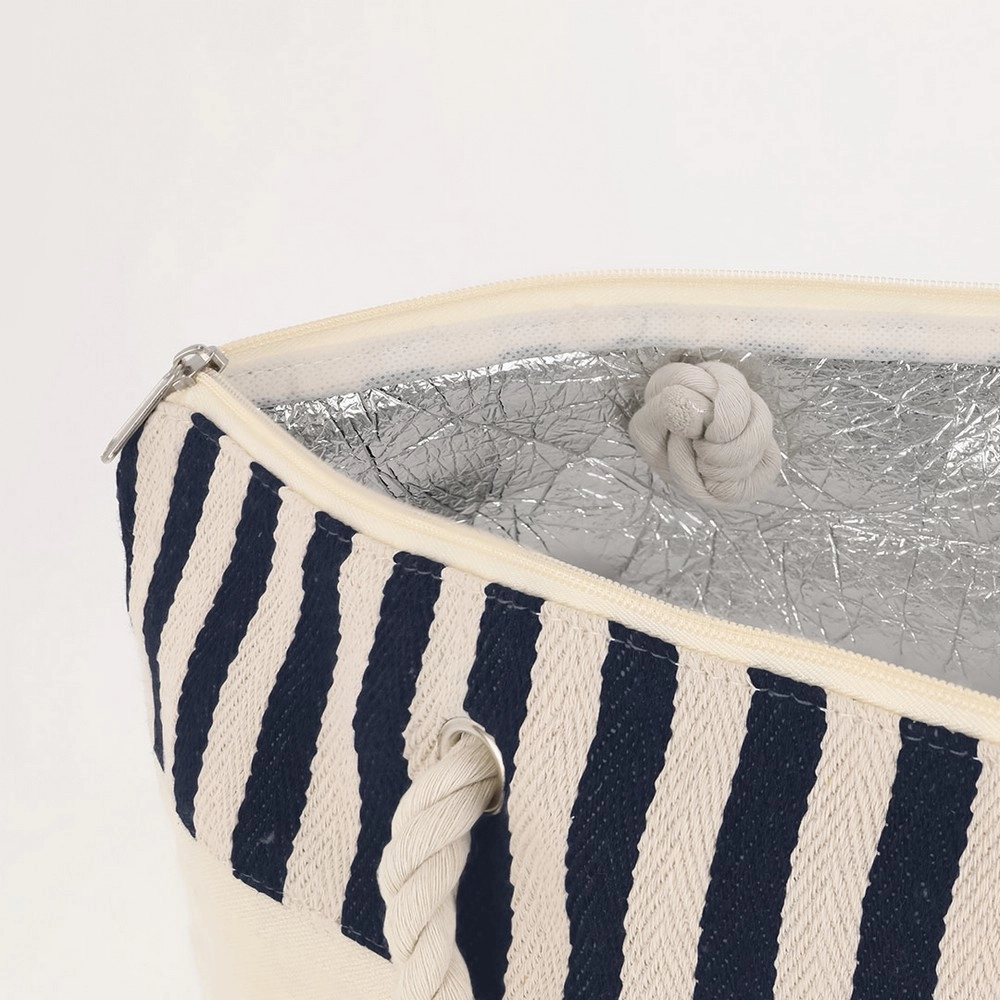 Torba termoizolacyjna, posiada zamek błyskawiczny i długie bawełniane uchwyty, wzmocnione solidnymi metalowymi pierścieniami, produkt wykonany z poliestru RPET i aluminium
