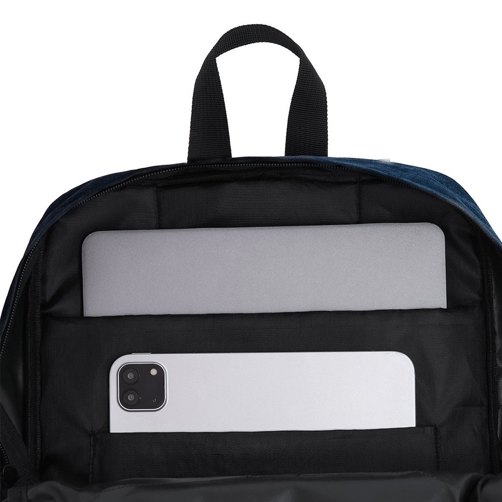 Plecak na laptopa, wyposażony w wyściełaną kieszeń na laptopa 15" i tablet 10", miękki tył zwiększający komfort użytkowania i regulowane paski na ramię umożliwiające dopasowanie ich długości do własnych preferencji, idealny do przechowywania sprzętu elektronicznego i codziennego użytku, produkt wykonany z poliestru 600D RPET