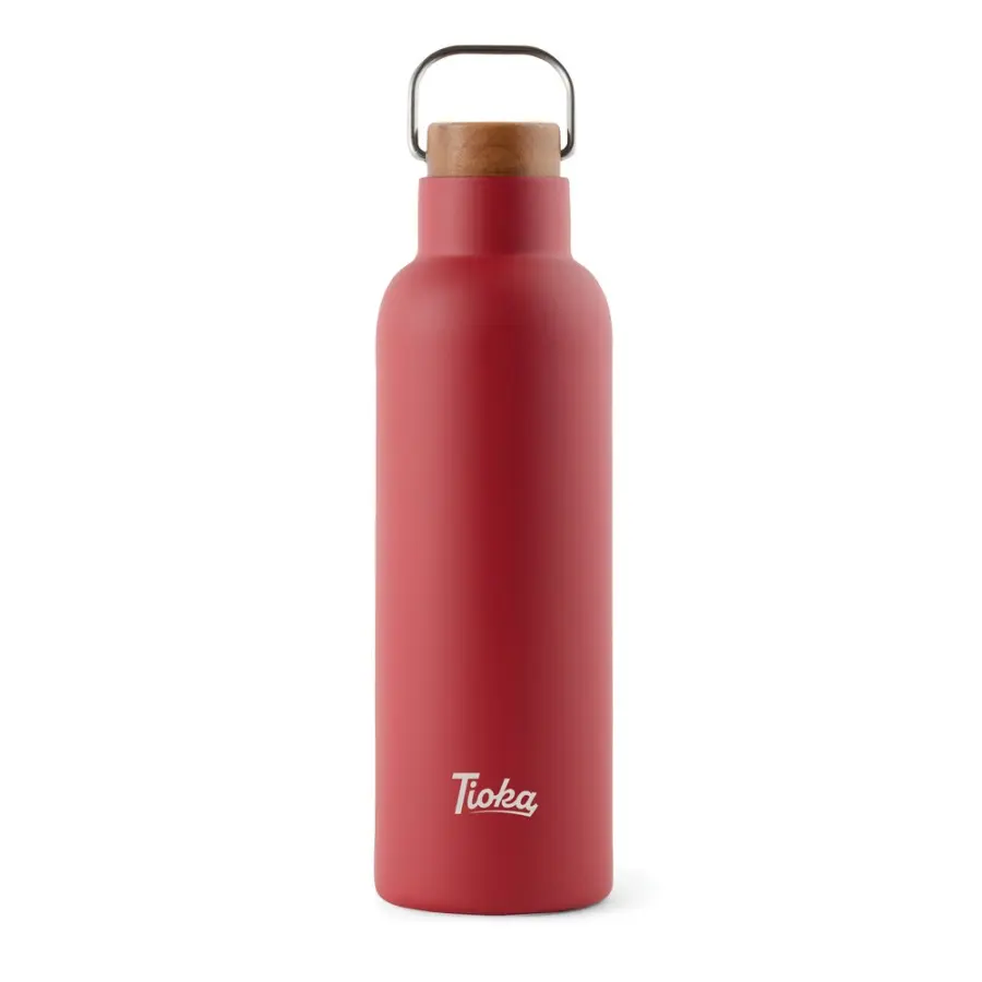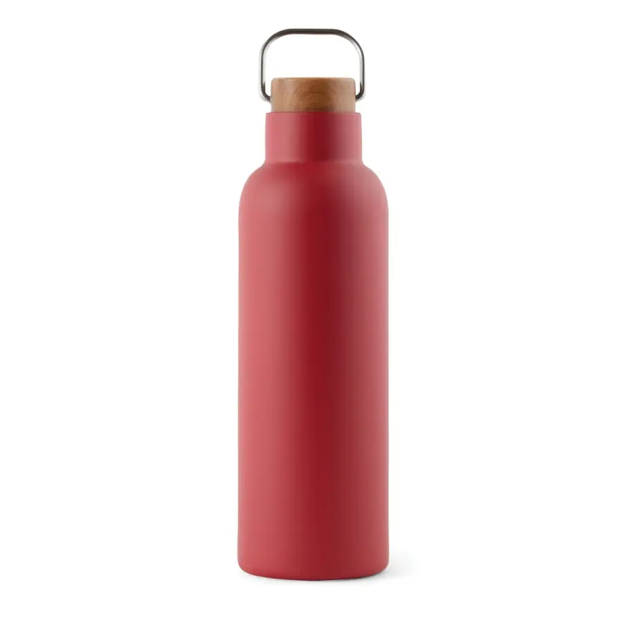 Butelka termiczna 800 ml, podwójne ścianki ze stali nierdzewnej z próżnią pomiędzy, wykonana ze stali nierdzewnej z recyklingu z certyfikatem RCS, drewniane wieczko z uchwytem, całkowita zawartość materiałów z recyklingu obliczona na podstawie wagi całkowitej przedmiotu: 79%, wyłącznie mycie ręczne, w pudełku z papieru kraftowego z certyfikatem FSC®