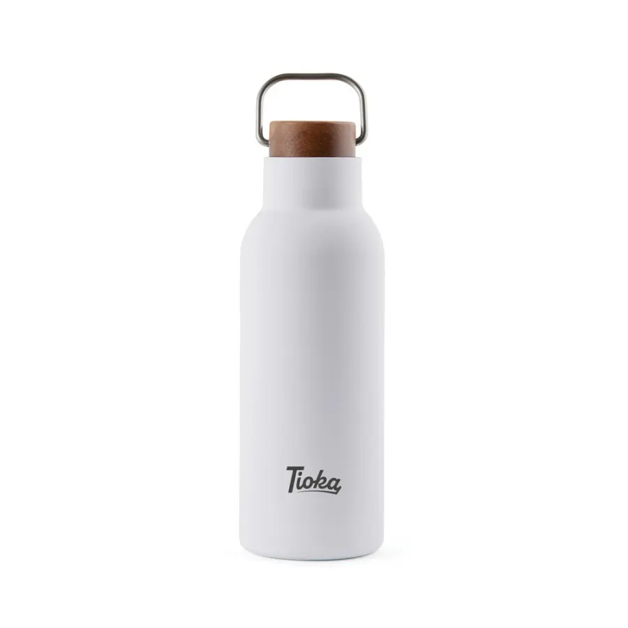 Butelka termiczna 580 ml, podwójne ścianki ze stali nierdzewnej z próżnią pomiędzy, wykonana ze stali nierdzewnej z recyklingu z certyfikatem RCS, drewniane wieczko z uchwytem, całkowita zawartość materiałów z recyklingu obliczona na podstawie wagi całkowitej przedmiotu: 75%, wyłącznie mycie ręczne, w pudełku z papieru kraftowego z certyfikatem FSC®