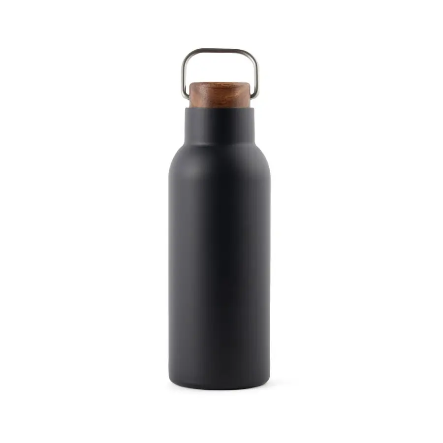 Butelka termiczna 580 ml, podwójne ścianki ze stali nierdzewnej z próżnią pomiędzy, wykonana ze stali nierdzewnej z recyklingu z certyfikatem RCS, drewniane wieczko z uchwytem, całkowita zawartość materiałów z recyklingu obliczona na podstawie wagi całkowitej przedmiotu: 75%, wyłącznie mycie ręczne, w pudełku z papieru kraftowego z certyfikatem FSC®