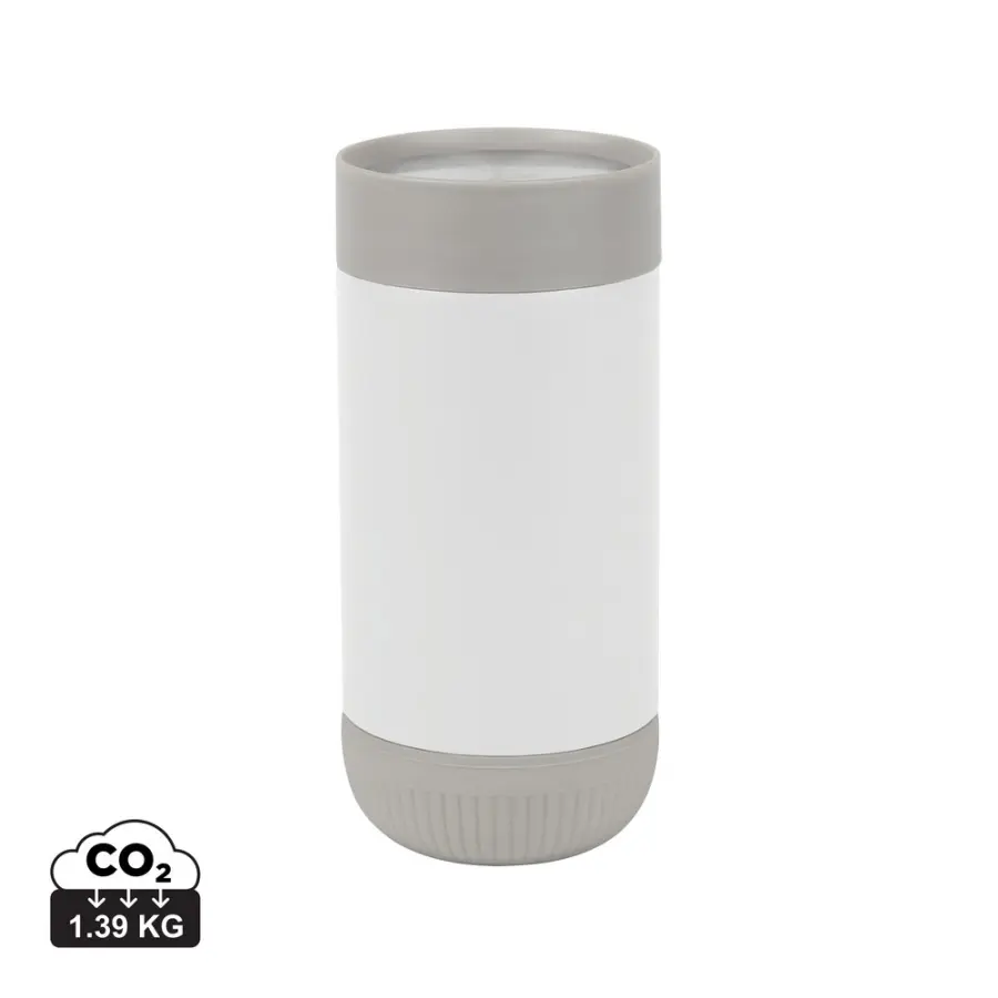Kubek termiczny 300 ml, podwójne ścianki z próżnią pomiędzy, utrzymuje temperaturę napojów ciepłych do 5 godzin oraz zimnych do 15 godzin, wykonany ze stali nierdzewnej z recyklingu z certyfikatem RSC (Recycled Claim Standard) który gwarantuje, że wykorzystane materiały pochodzą z recyklingu, całkowita zawartość materiału z recyklingu obliczona w oparciu o wagę całkowitą przedmiotu: 58%, w pudełku z papieru kraftowego z certyfikatem FSC®, wyłącznie mycie ręczne