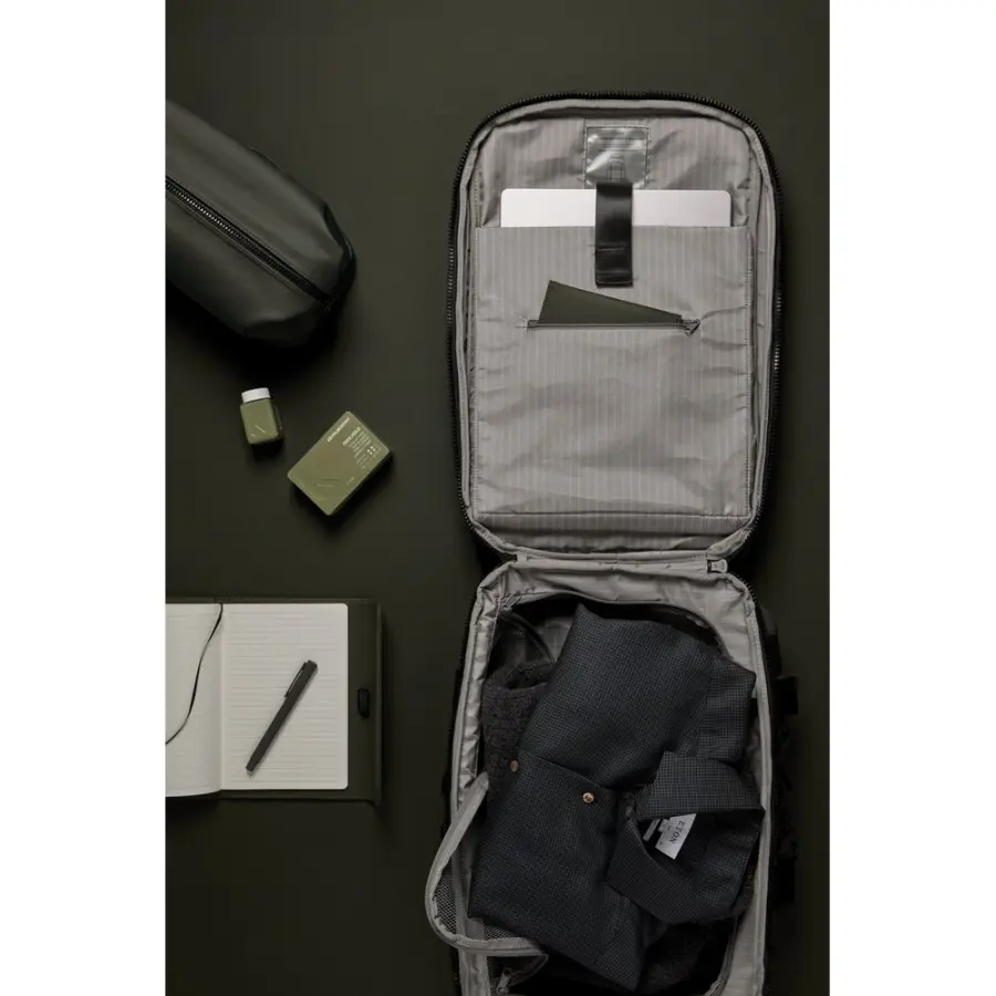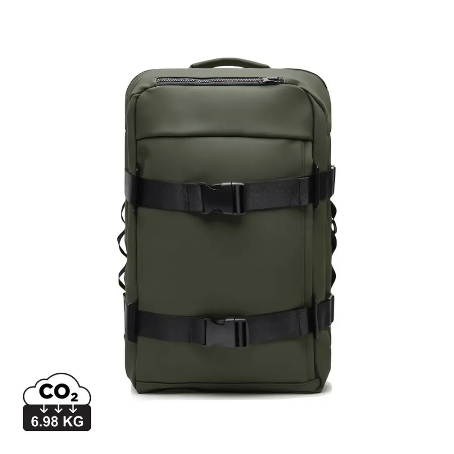 Plecak na laptopa, wykonany z poliestru z recyklingu z certyfikatem RCS, wykończenie z PU, przestronna przegroda główna, dwie kieszenie na zewnątrz, pasek do zamocowania na walizce, miękkie, regulowane paski na ramiona, całkowita zawartość materiałów z recyklingu obliczona w oparciu o wagę całkowitą przedmiotu: 16%